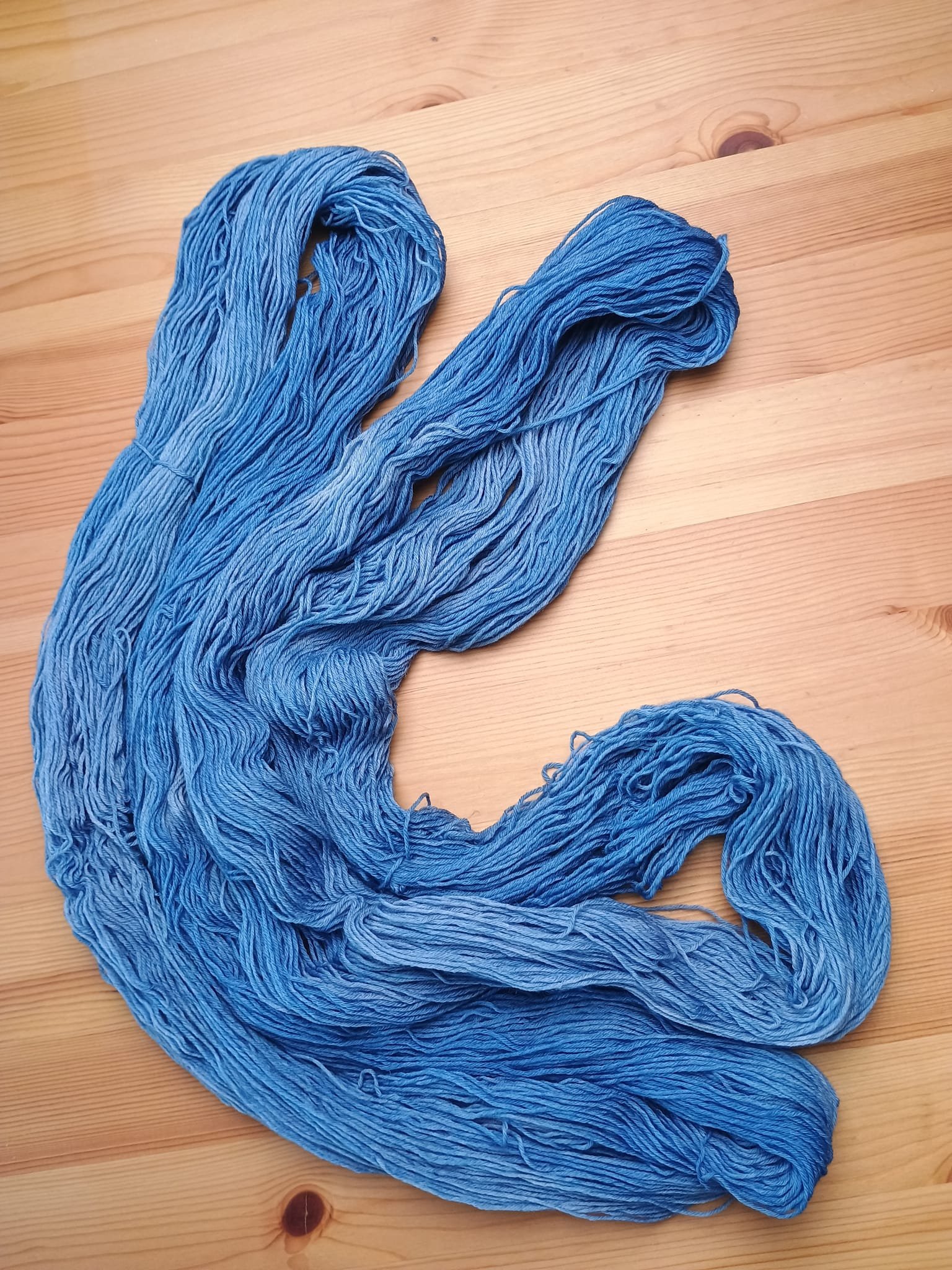 Dit is een natuurlijk kenmerk van ambachtelijk geverfde wol en hoort bij het levende karakter van het materiaal. Het doet niets af aan de kwaliteit — maar het is fijn om er rekening mee te houden.